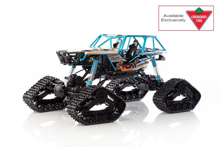 BIG TOM SC takes your off road adventure to new heights! Using the included tracks, this massive RC truck can carve through tough obstacles with ease. For a more spirited adventure, switch to the oversized tires and cover more ground!